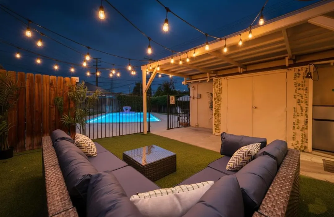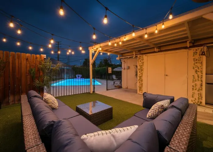 Chic Boho Retreat - Pool, Spa, Patio, Mini Golf & Arcade, Mins From Universal Studios! Los Angeles villa is gesitueerd op 10 minuten rijden vanaf Chandler Bikeway en biedt toegang tot bezienswaardigheden in de omgeving.